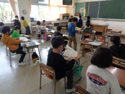 ちょうど、漢字・計算の練習プリントを終えたところのようでした。