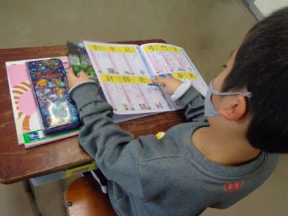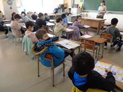 この場面では、「引」という字を学んでいましたが、「引く」にもいろんな意味があり、この「引」はどんな扱い方をするのか、例を出し合って理解を深めていました。