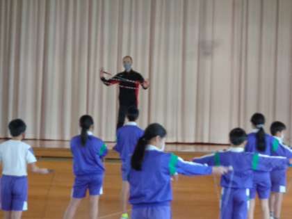 「縄跳び師」の田口 師永さんを講師にお招きして、低・中・高学年別に縄跳び教室を実施しました。