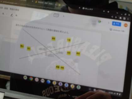 今日の学習では、jamboardで自ら分類したり、見つけた熟語を位置づけたりして学びを確かにしています。できあがった友達のjamboardは容易に参照して、いろんな熟語に触れることもできます。