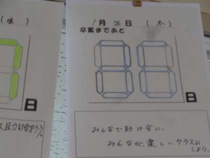卒業までの日数と、作成者の全員へのメッセージが書き込まれています。
