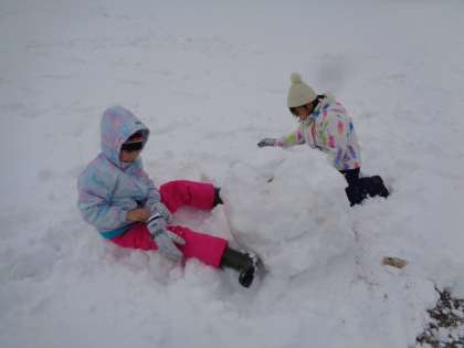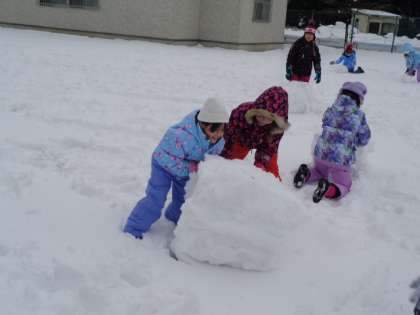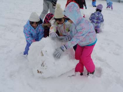 「先生、持ち上げて、雪だるまにしてください!」