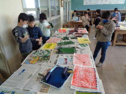 発泡スチロールに、形を押し当てたり、ひっかいたりして様々は模様を作ります。