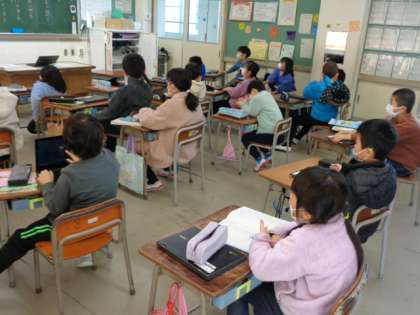 1年生に引き続き、2年生教室におじゃますると、ここでも土曜日の学習参観の準備に取りかかっていました。