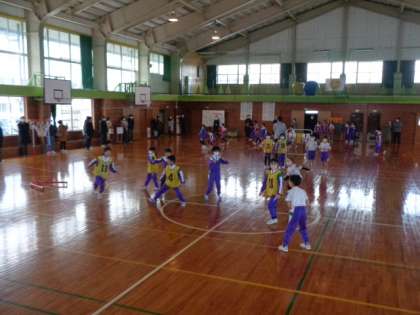 学習内容:パスやシュートの仕方等、攻め方を工夫してゲームを楽しむ。