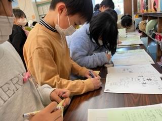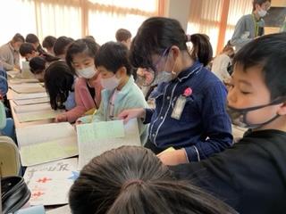 「3年生の〇〇さんの本に登場する犬が強くておもしろかった!」「2年生でも3年生くらい長いお話を書いていてびっくりしました。」と、互いに学習活動を見合うことでよい刺激になったようです。