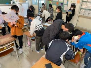 同じくお話を書いていた3年生と読み合いをし、付箋に感想を書いて伝え合いました。