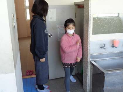 3枚目。トイレ清掃が終わり、下級生が用具を片付けた直後の様子です。6年生がそっとその見届けをしています。下級生も6年生が自分の仕事を見届けてくれていることを知っています。そこには言葉はありませんが、異年齢だからこそ生まれる信頼関係を見ることができます。