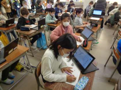 2年生は国語の授業を公開しました。chromebookとノートへの作文を併用しての学習を無理なく行っている様子はきっと驚かれたことでしょう。