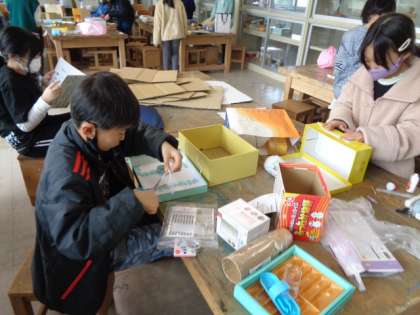 「大切な宝物を入れよう」のテーマのもと、ダンボールボックスを制作中です。