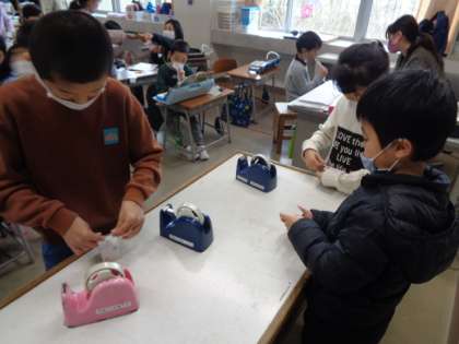 「課題が早く終わった子から、紙で自由に箱をつくっていいよ!」