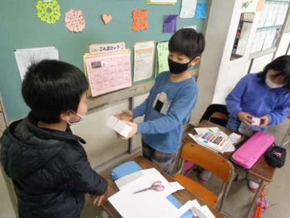 といろんな子が紙でつくった箱を見せに来てくれました。