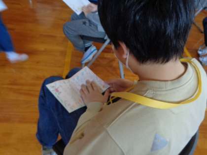 「6年生の手が動いて、眉間を抑えていた。たぶん自分のカードを読んで思わず涙が出たのだと思う。うれしかった。」