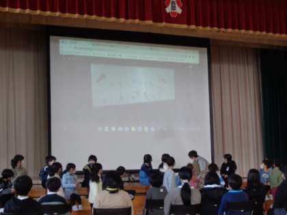 しかし、出来上がった動画は、コマドリアニメの特性を生かして奇抜なアイディアで感謝を伝えようとする作品、6年生の1日の活動を校舎の様々な場所でのロケ動画の組み合わせて表現した作品がありました。6年からは動画のアイディアに歓声が上がっていました。
