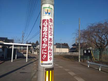 本校5年児童の作品が選ばれ、学校前の市道の電柱に掲示されています。