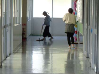 本校は縦割りでの「黙動清掃」に取り組んでいます。