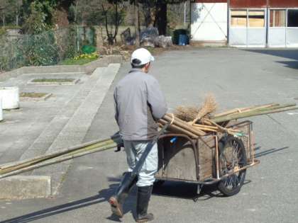 長い竹材などを動かすことになりますので、子供たちの授業中に手早く外し、雑庫の方へと運んでいます。