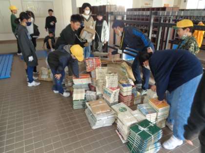 12日(日)に行われるPTA資源回収に向けて、5年生が6時間目の一部を使って学校にたまった資源を玄関まで運び出してくれました。