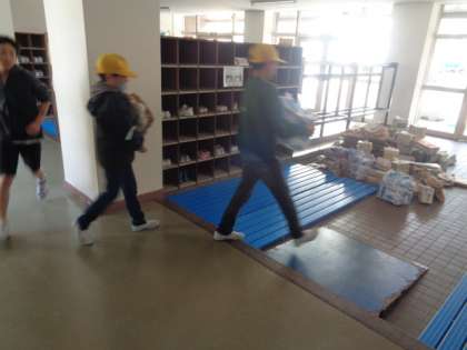 12日(日)に行われるPTA資源回収に向けて、5年生が6時間目の一部を使って学校にたまった資源を玄関まで運び出してくれました。