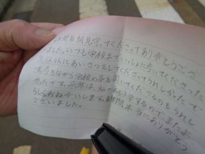 毎日、登下校の安全を見守ってくださった見守り隊員の方に、感謝を伝える活動が登校時の至る所で行われたようです。