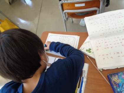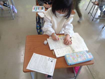 3月20日(月) 1年生 おもいだしてかこう