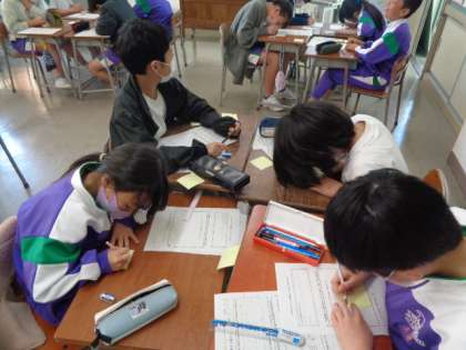 キャリアパスポートに今年1年の成長をまとめています。グループの友達から自分の成長についてもコメントをもらう予定です。あとでキャリアを振り返るよさが味わえる記録となればいいですね。