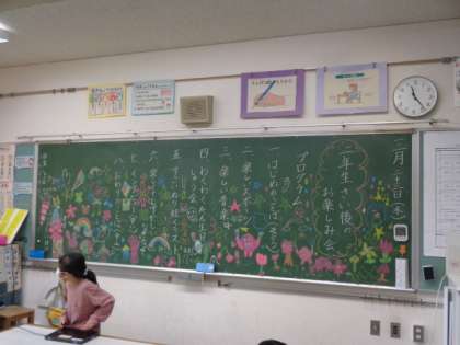 2年生のお楽しみ会です。画像はプログラム3番の時の様子ですが、担任によると、最も盛り上がったプログラムは、このあとの係からの出し物だったのだとか。