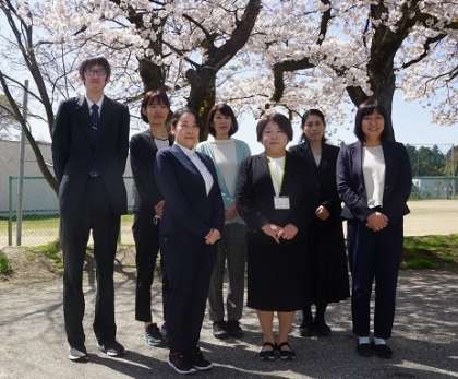 (画像の教職員の他に、英語専科の坪坂教諭と、ALTのアメッドさんが転出となります)