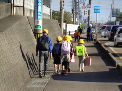 集団登校1日目。元気に全員登校してくれました。