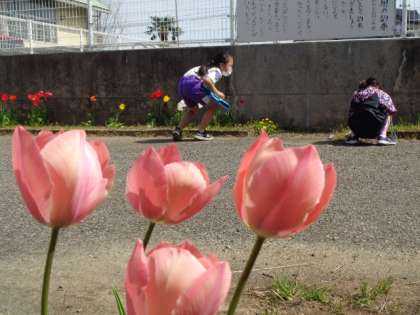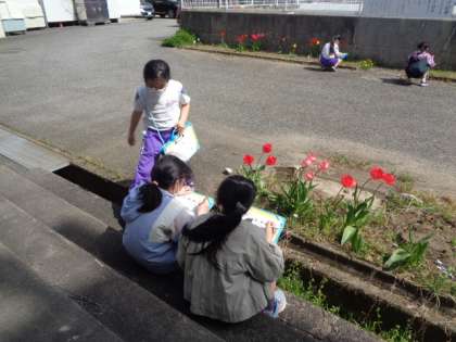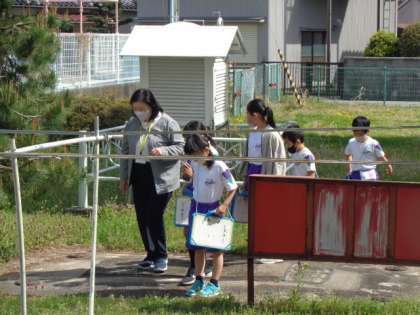 初夏のような陽気でしたが、春の自然を感じてどんな色や形があるかを見つけ合いました。「春ってやさしい色や形が多いね。」とつぶやく子がいました。