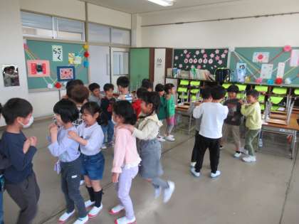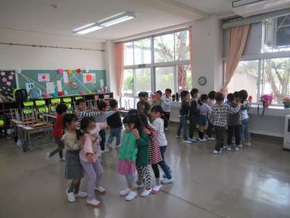 友達となかよしになれるように、じゃんけん列車で遊びました。