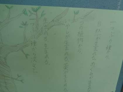 国語の教科書の扉の詩「創造」の文体を一部工夫して替えて文字通り詩を創造しているのでした。