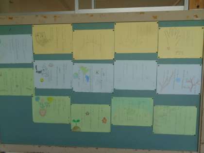 教室前を通りかかると、廊下の掲示物がそろっていました。