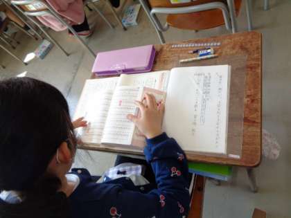 国語科の学習で漢和辞典を活用している場面です。漢和辞典に触れることをとおして、語彙や漢字の成り立ちに関する奥深さに触れる子がいます。今年もきっと生まれることでしょう。いろんな自学のテーマも生まれるといいですね。