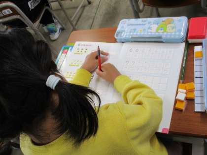 最後に、数字が数の大きさを表すことを学び、ノートにきれいに書き写していました。