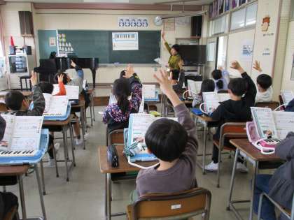 鍵盤ハーモニカの運指の練習に取り組んでいました。