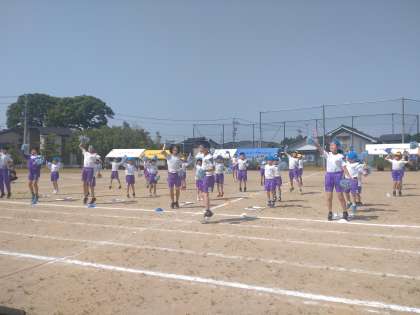 気温が高くなることが予想されましたので、応援パフォーマンスの予行からスタートさせました。どの団もすでに完成度が高いです。6年生はもちろん、初めての1年生も生き生きとパフォーマンスに取り組むのが、長岡小学校の応援パフォーマンスの特色となっています。