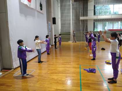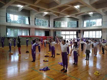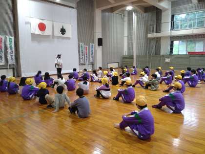 朝のつどいに参加しています。全員元気です。異常ありません。