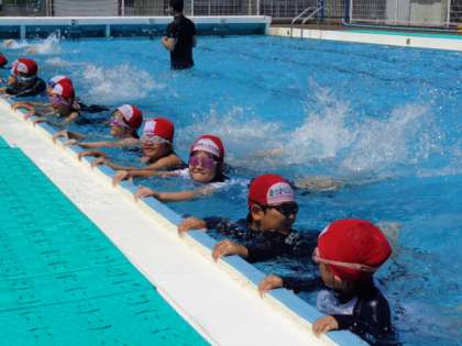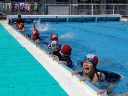 2回目の水泳学習です。バタ足の練習からスタートです。