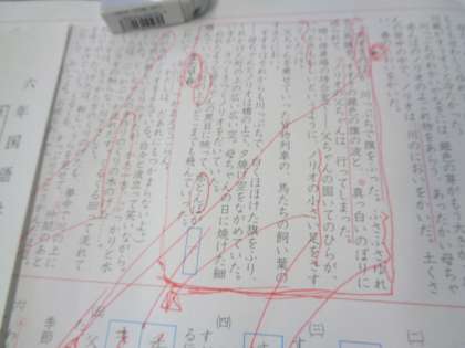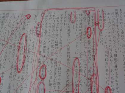 重要語句を丸で囲む、問いと内容との関連を線で結びつける。