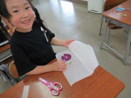 「この花がずっと変わらないで見られるなんて、うれしい!」「すごくきれいな押し花ができたよ」と笑顔も満開の子供たちでした。