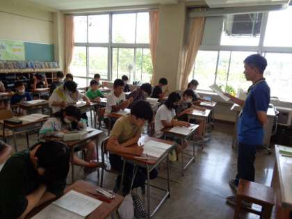 宿泊学習に向けて、しおりの読み合わせと、動きの確認を行っていました。