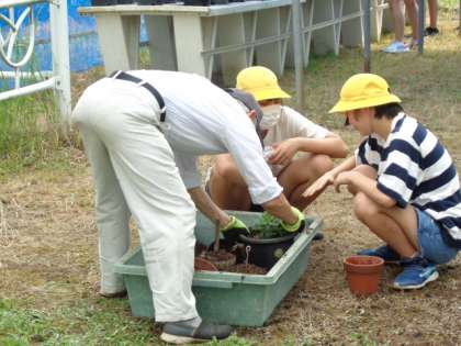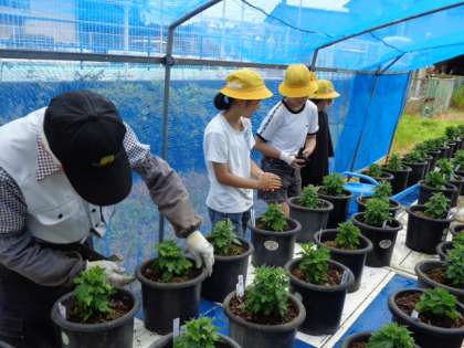 菊花会のご指導を仰ぎ、菊の植え替え作業を行いました。