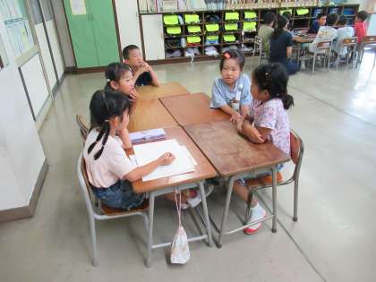 学級会で「みんなでたのしいことをしたい」という声が上がり、どんなことをしたいか、何をしたらみんなが楽しめるかを話し合いました。