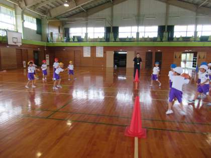 子供たちがあまり経験がないと話していたドッジボールのお試しをしました。投げたり逃げたりしながら、楽しく試合をすることができました。