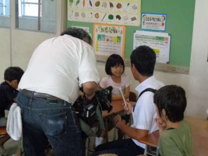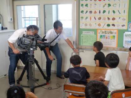 1年生教室にテレビカメラが入り、数名の子がインタビューを受けました。