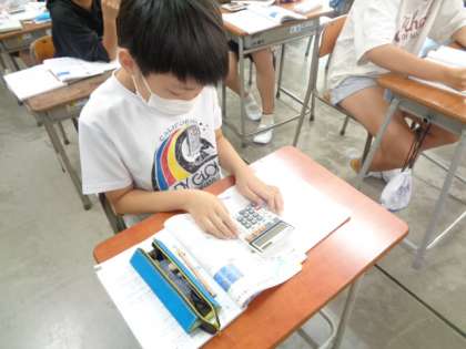 最初は、難しく感じているようでしたが、比較して読み解くことに気づいた子供たちは盛んに電卓を駆使して数値を導き出していました。