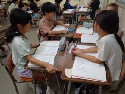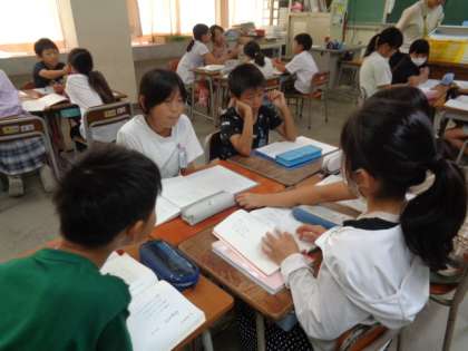 「いろんな考えが出てきたから、班で相談してごらん。」