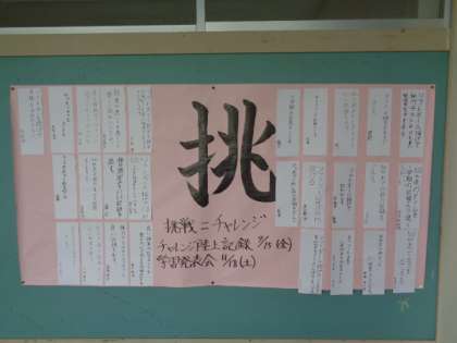 児童会室前の廊下に、6年生の挑む決意一覧がお目見えしました。