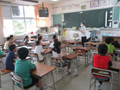 1年生は「きょだいな きょだいな」「すいかのたね」の読み聞かせを、